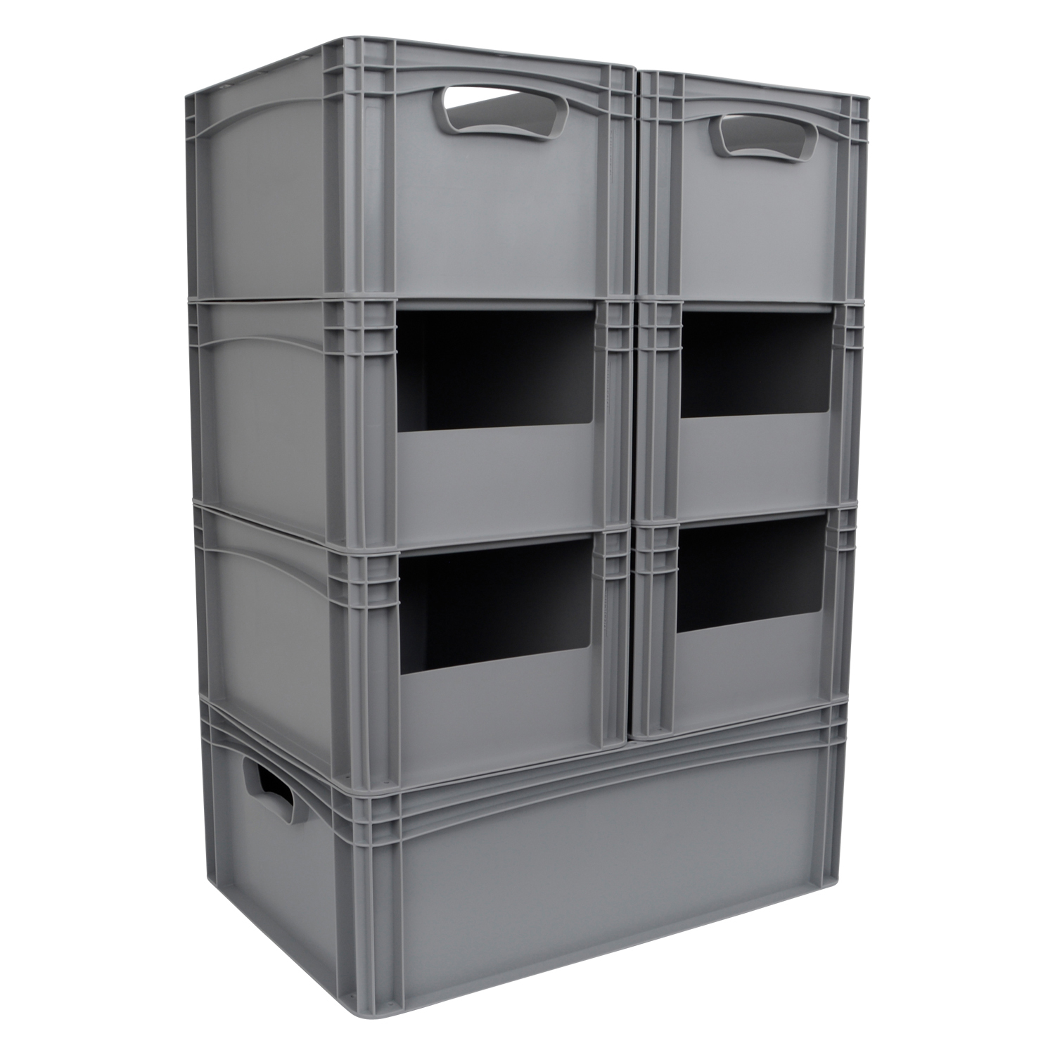 Die Eurobehälter unser ESB-Serie sorgen für Ordnung. Die Boxen sind in unterschiedlichen Größen erhältlich und stapelbar. Dadurch können Sie auf kleinem Raum viele Sachen lagern.