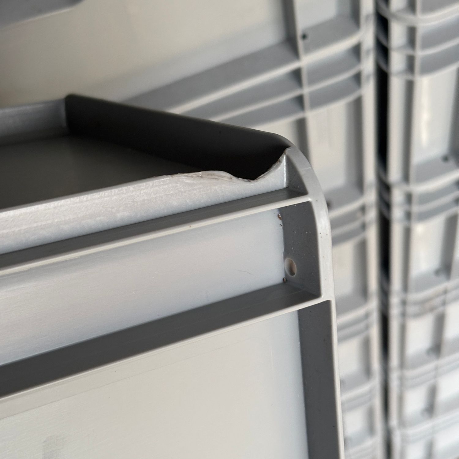 Diese Behälter weisen leichte optische Mängel wie Farbschlieren, Farbabweichungen, Kratzer, Klebereste oder vereinzelt leicht beschädigte Verstrebungen auf. Die Funktion bleibt aber immer fast vollständig erhalten. Alle Boxen sind wasserdicht, die Innenwände haben keine Löcher oder Risse. Lediglich die maximale Auflast beim Stapeln kann in seltenen Fällen etwas eingeschränkt sein. Die Produktbilder zeigen nur Beispiele. Sie erhalten immer das, was gerade am Lager ist. Die Auswahl erfolgt ausschließlich durch uns.